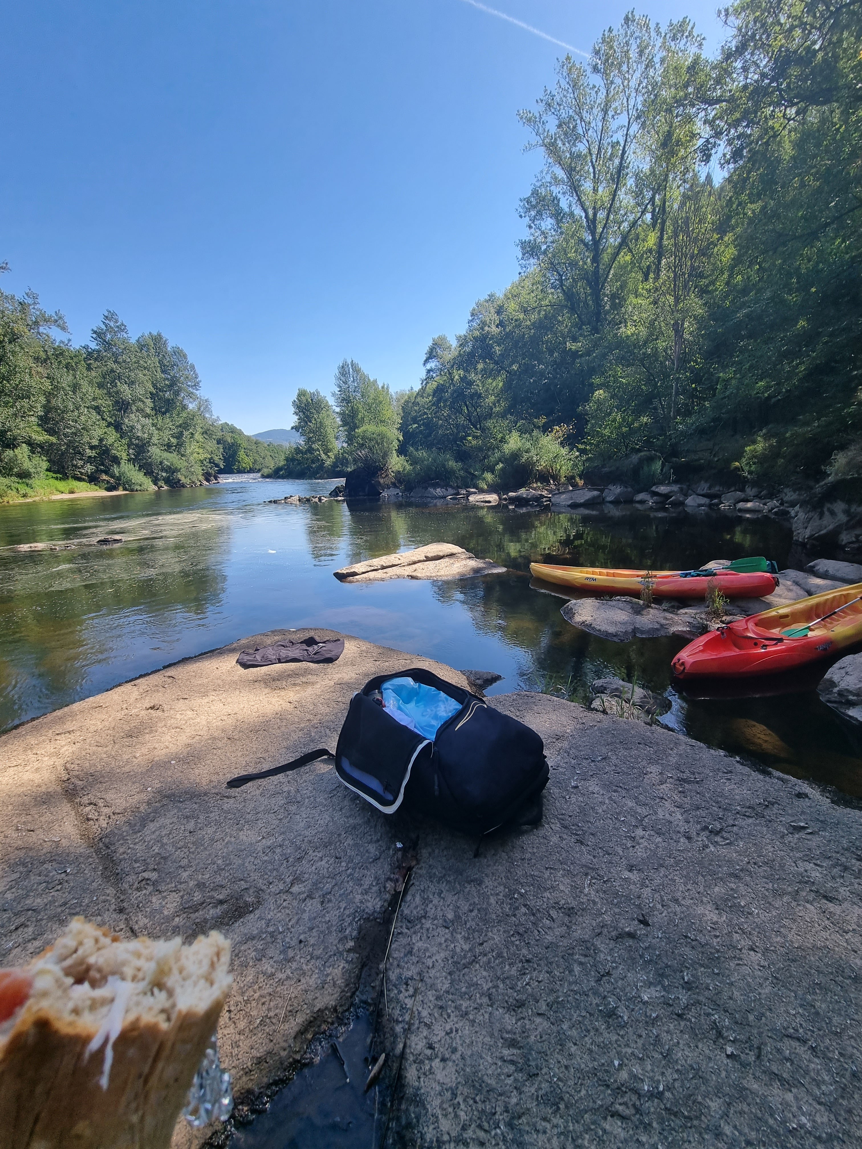 C'est partie pour une balade de 10km avec une eau un peu fraîche et un beau soleil. Pas beaucoup d'eau mais suffisamment pour faire une belle descente. Arrivée au port et là, surprise, de grands arbres, des tables, de l'ombre, une cafète, des hamacs, parfait pour passer une belle journée.