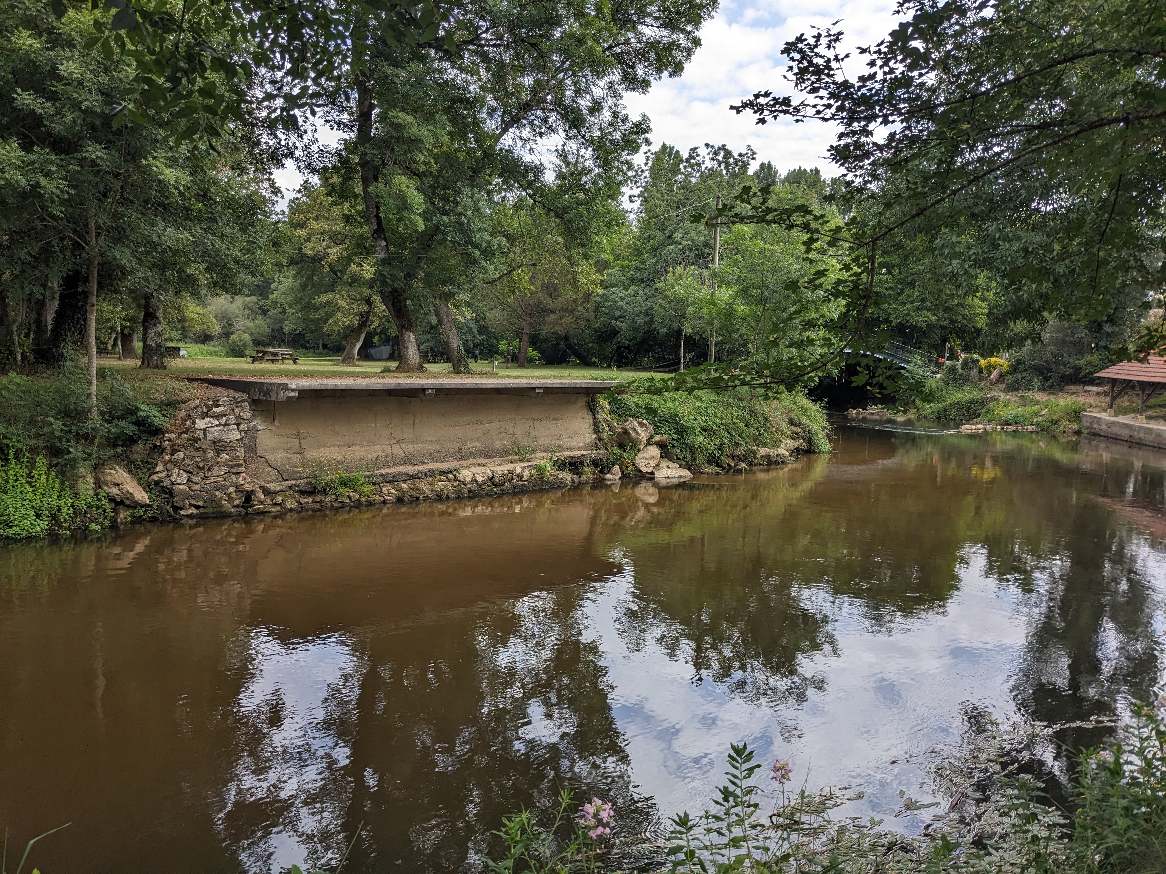 Beau lieu d'arrivée de notre balade en canoë, parking, abri, selon période de quoi se restaurer.