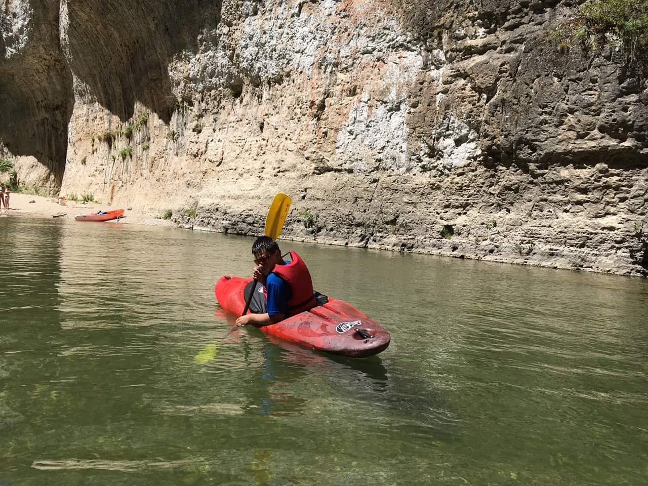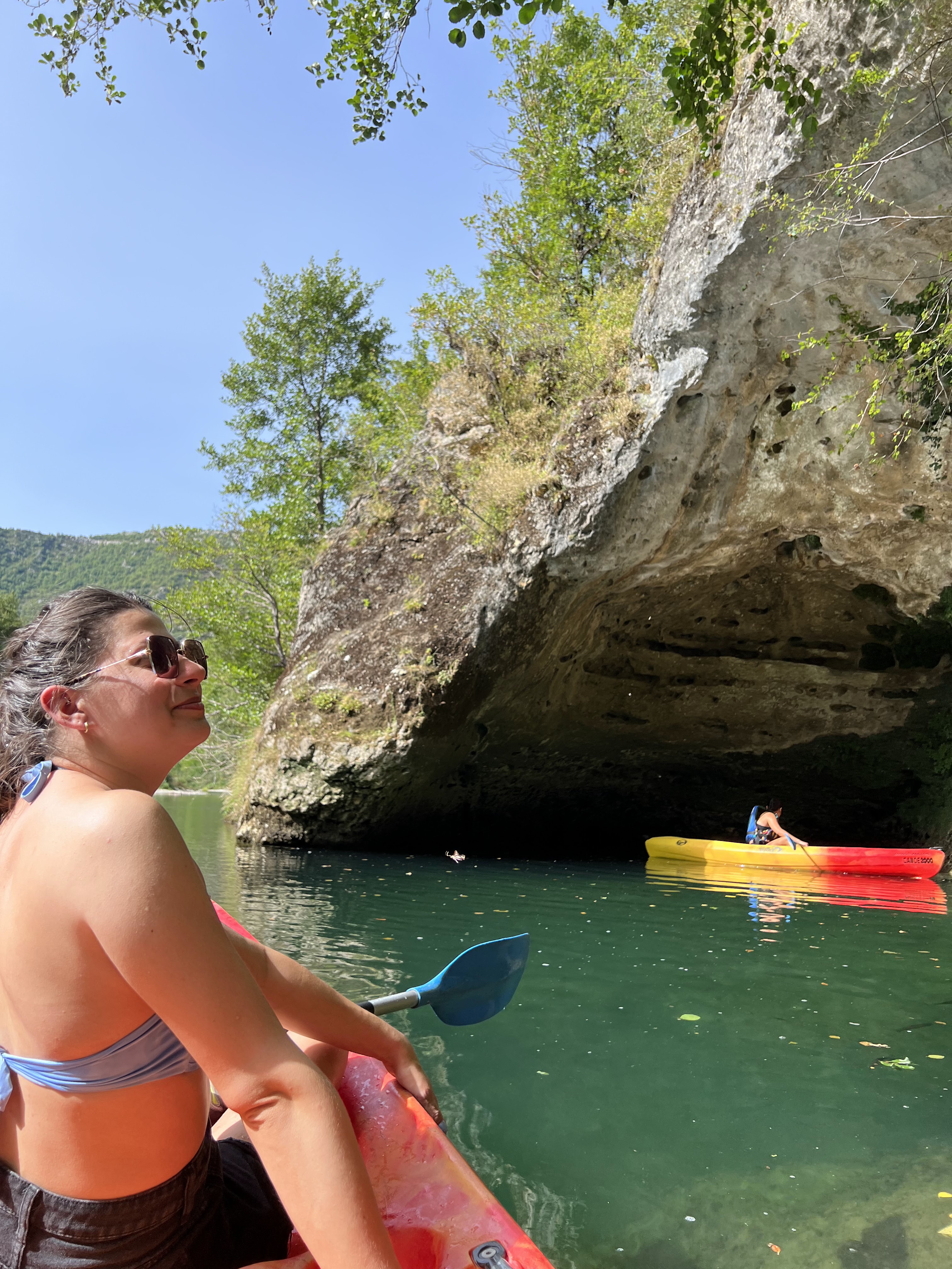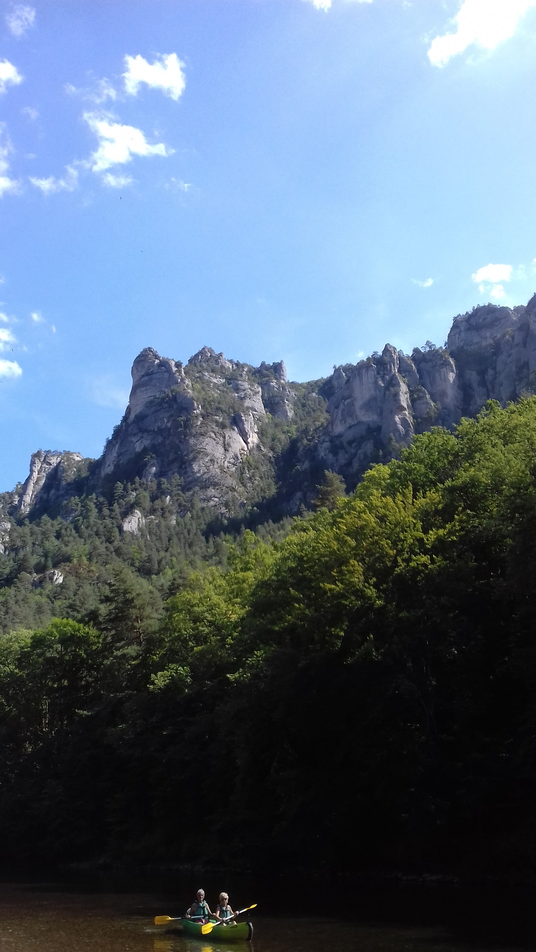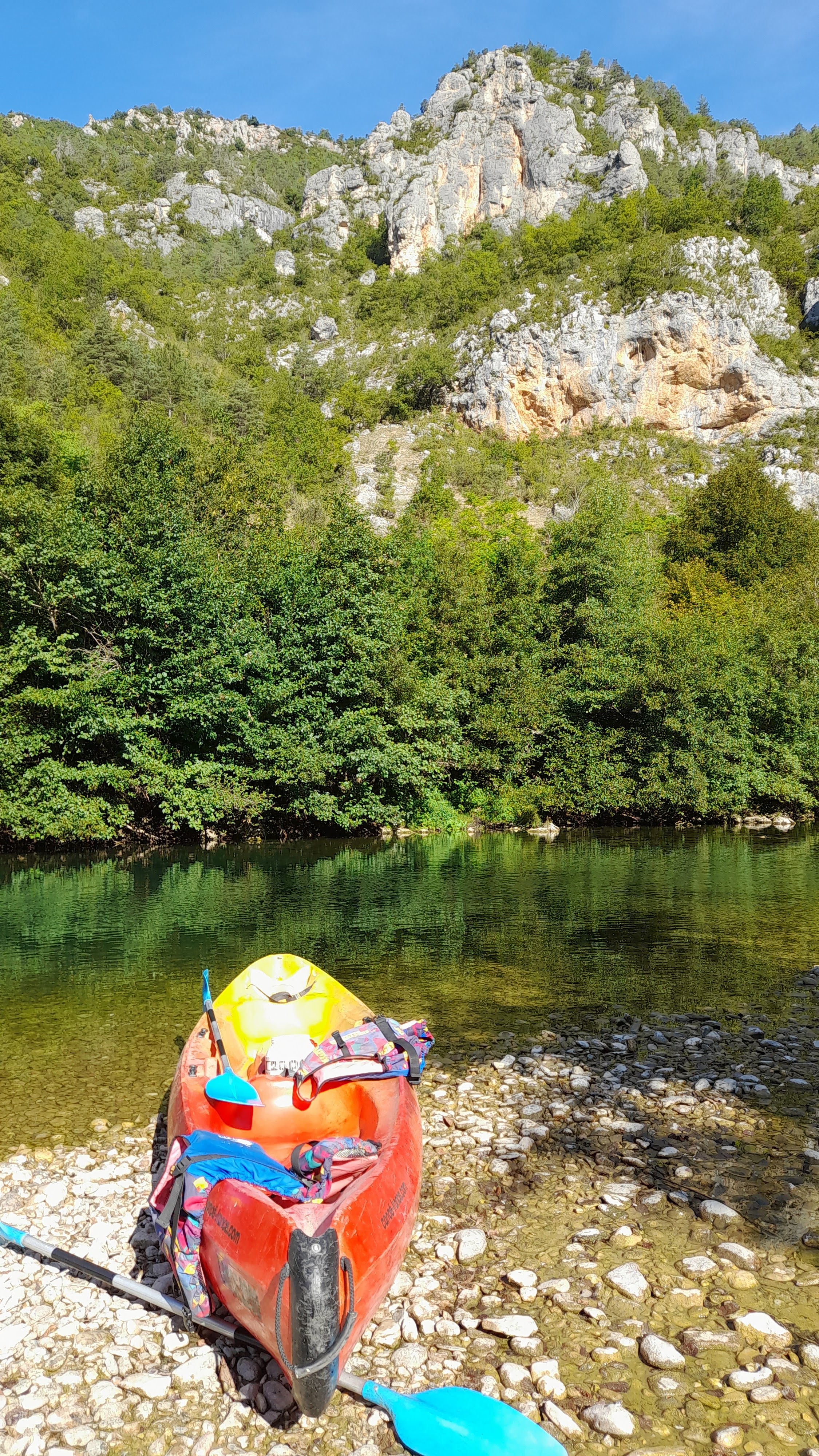 Merveilleuse balade au fil de l'eau et au pied de majestueuses parois rocheuses pendant plus de 3 heures ! on rame comme des fous pour le plaisir, on rit, on se baigne dans une eau cristalline et l'on admire les paysages grandioses. Tout est beau ! La douce folie et la générosité du chauffeur passionné, qui nous transporte en bus à La Malène ne fait que rajouter à la magie de cette aventure... Léa et Lou