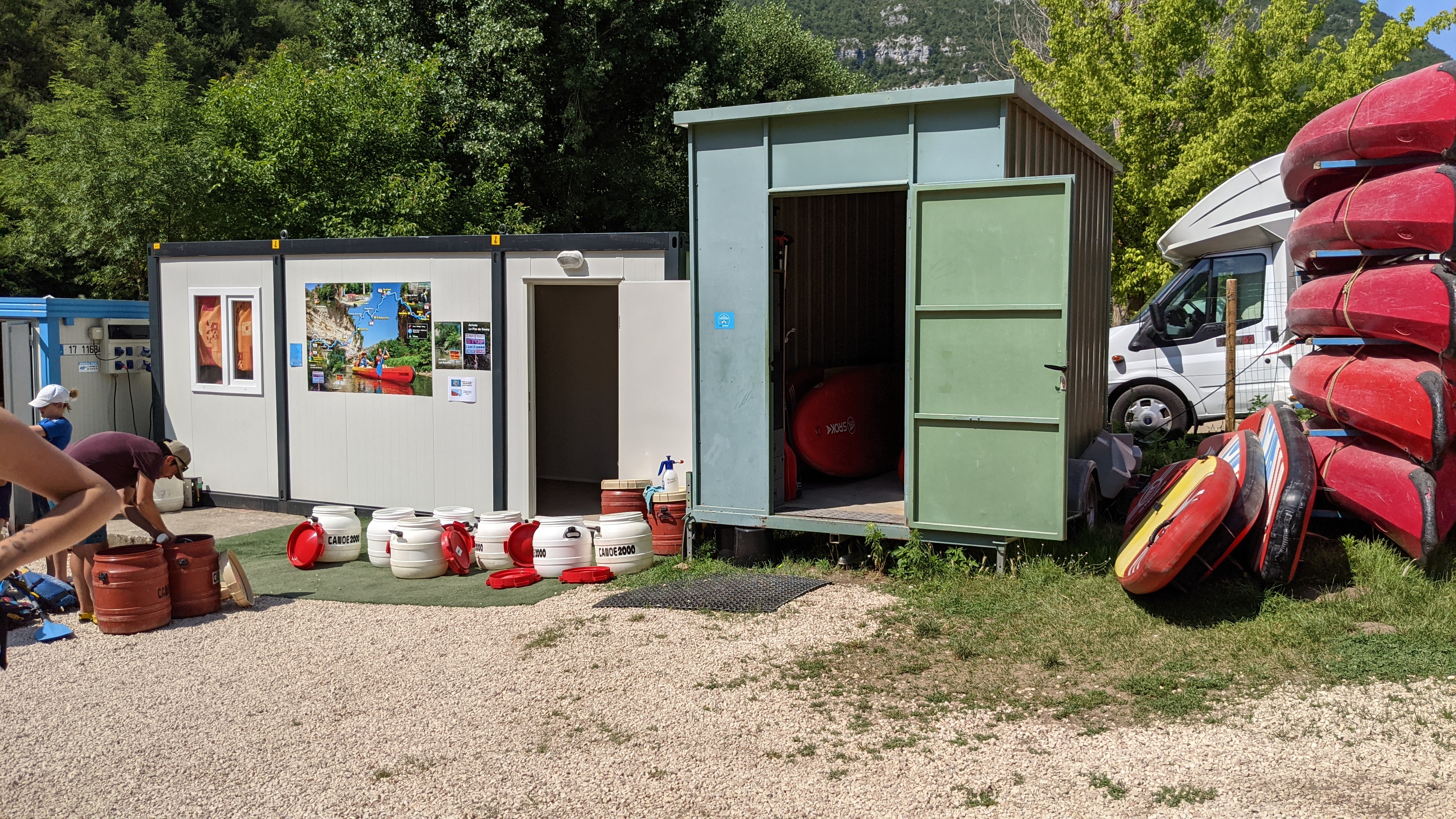 Personnel employé au top, cadre magnifique, super parcours, camping yelloh sur notre parcours vraiment au top, GROS BEMOL pour canoë 2000 en ce qui concerne la prise en charge de nos affaires sur le retour que l'on avait déjà spécifié lors de notre passage deux heures avant où on a attendu pratiquement 1h30 lors de notre fin de parcours sans pouvoir se changer ni s'hydrater, car nos affaires avaient été oublié au camping, aucun geste commercial n'a été proposé par la gérante, qui n'a su qu'être hautaine, nonchalante, et froide Pour notre prochaine sortie dans les gorges du Tarn, on choisira un autre prestataire
