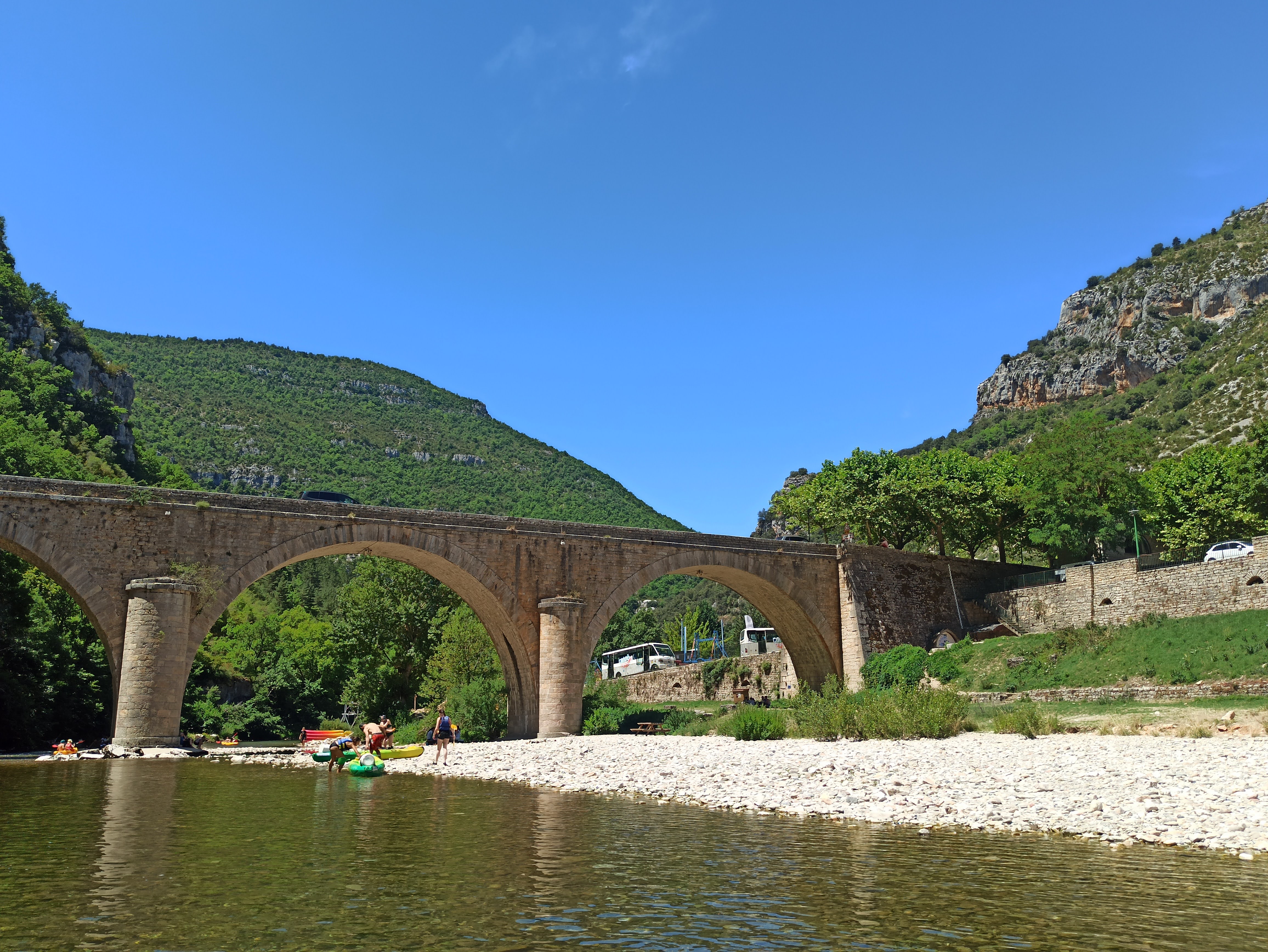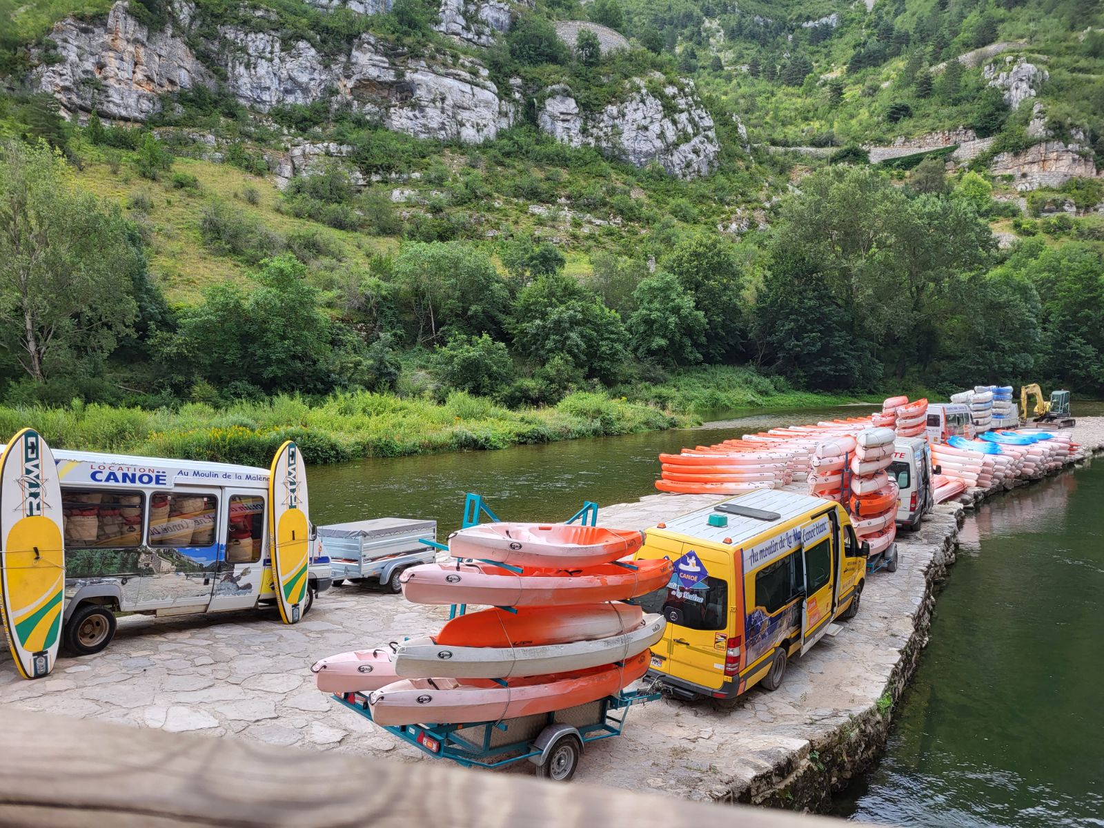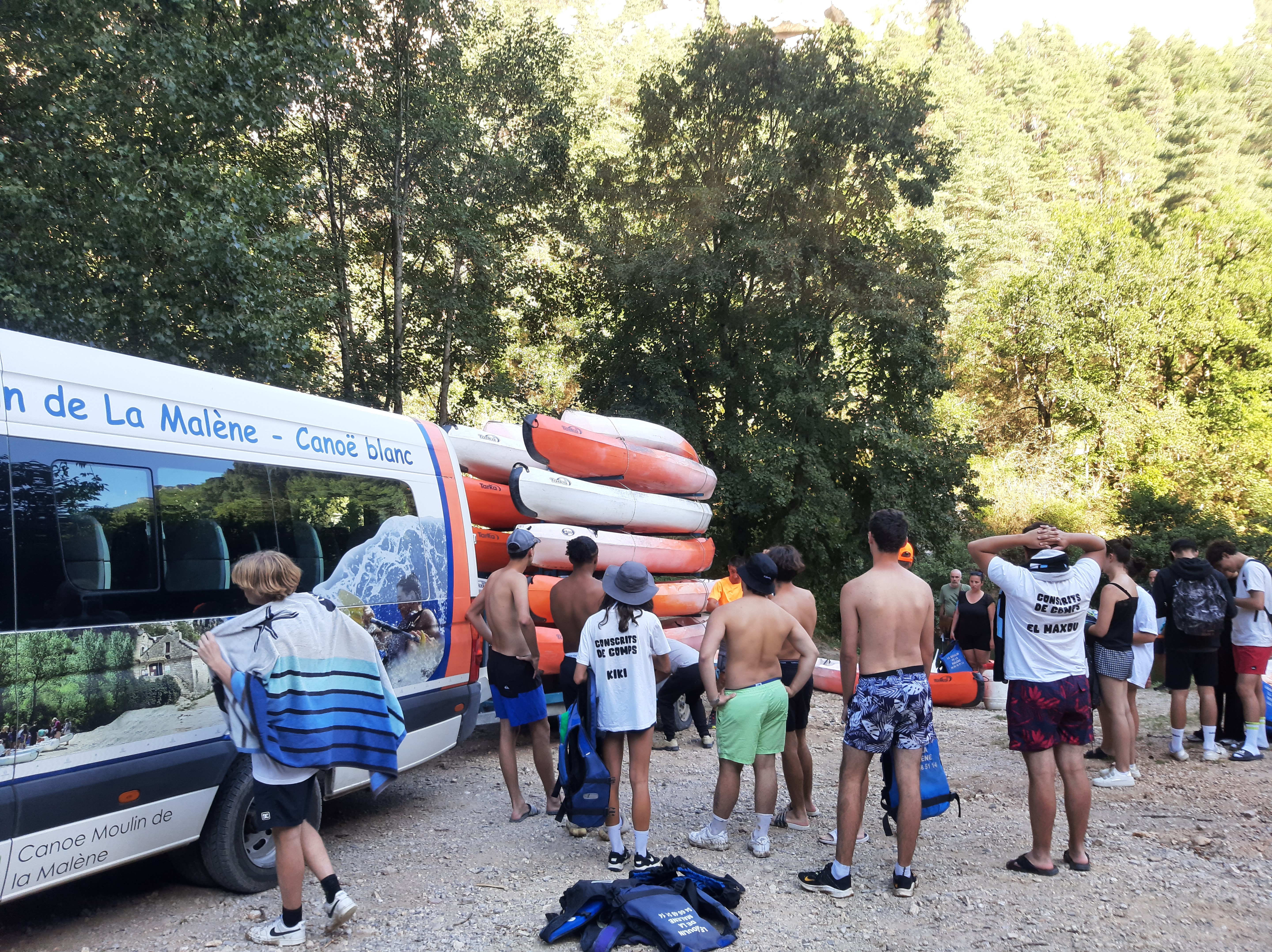 Parfait, comme la dernière fois (parcours La Malène -> Pas de Soucy) Les navettes servant au retour sont étroites, faut pas être gras ! Mais on y arrive Le plus méritant étant le gars qui conduit le minibus + la remorque sur la route étroite, filez lui une augmentation
