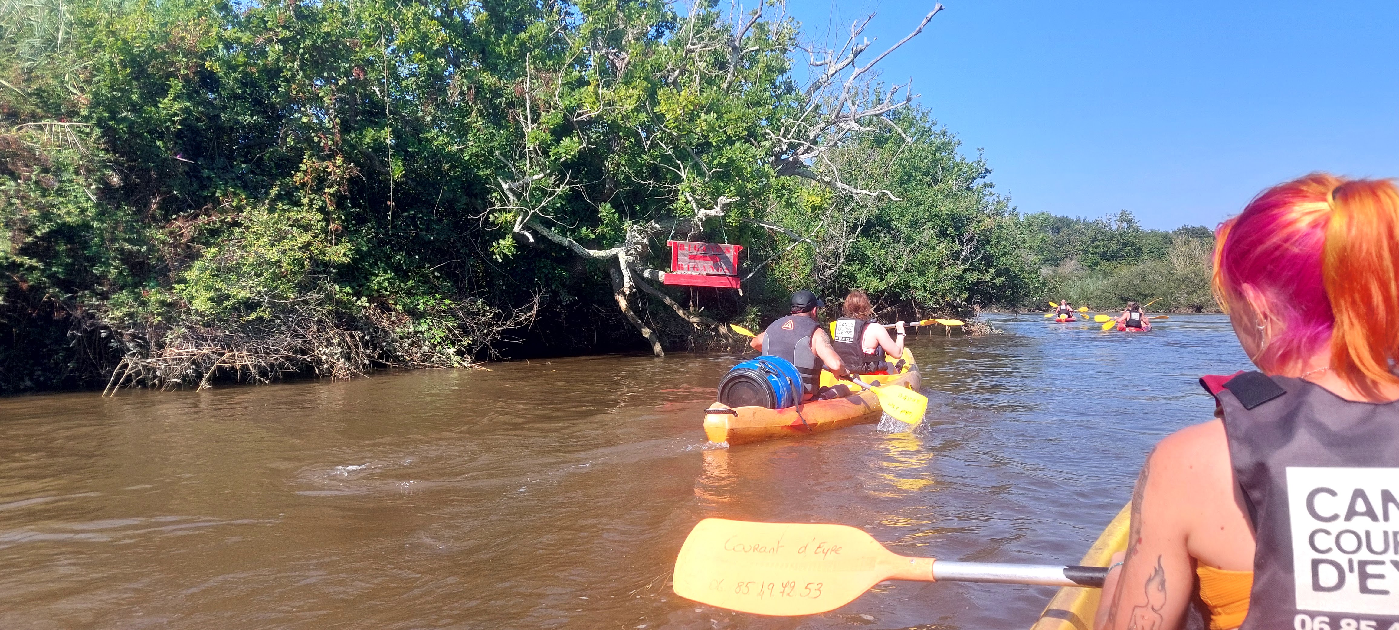 A fuir absolument. Nous avons été agressées par une bande de racailles (un vingtaine de mecs bourrés), mises à l’eau, insultées, obligées de fuir en ramant comme des malades. Au retour nous l’avons signalé à Courant d’Eyre qui répond que c’est pas leur problème ils ne font que louer le matériel et ne sont pas responsables du comportement des gens !