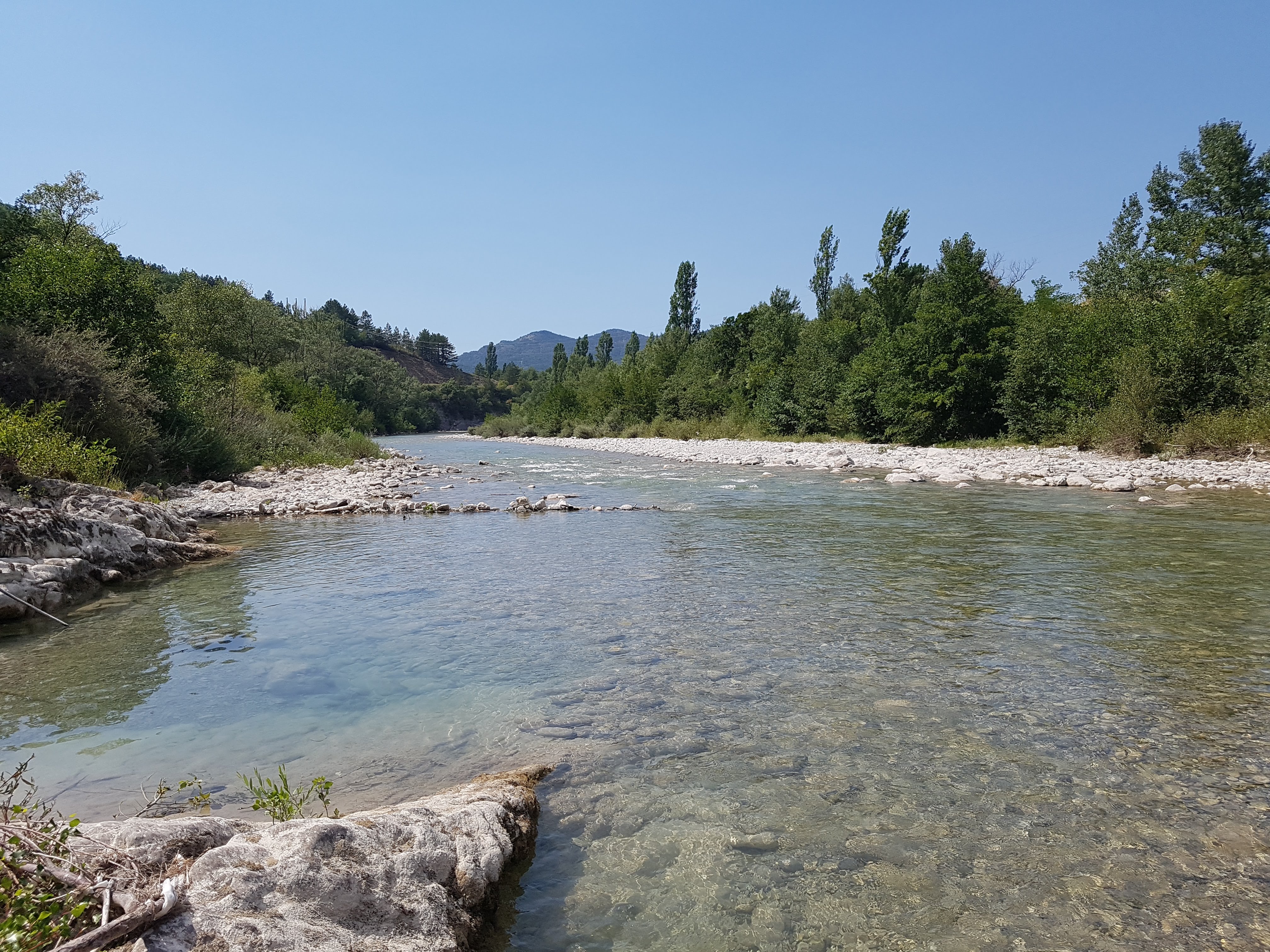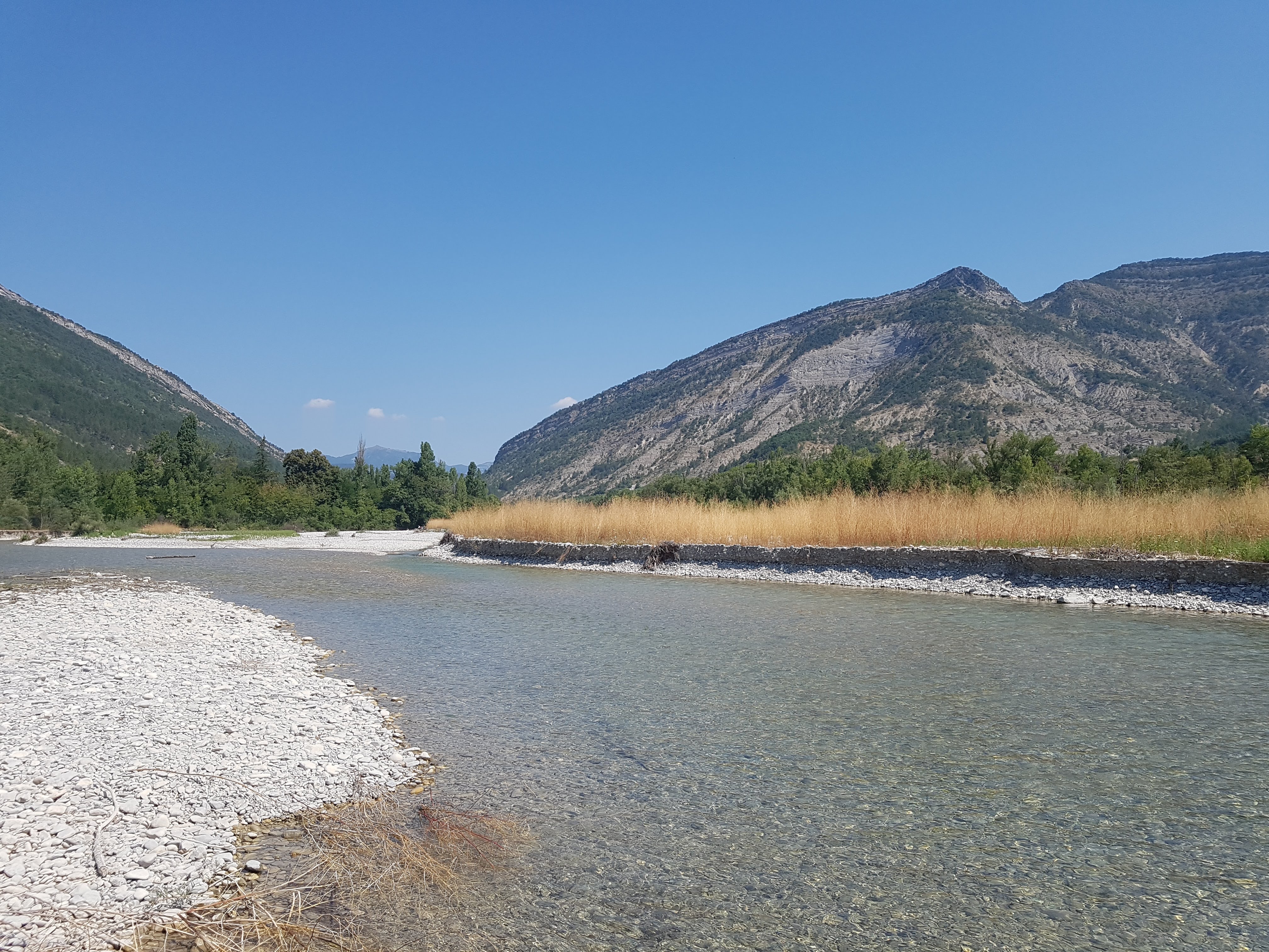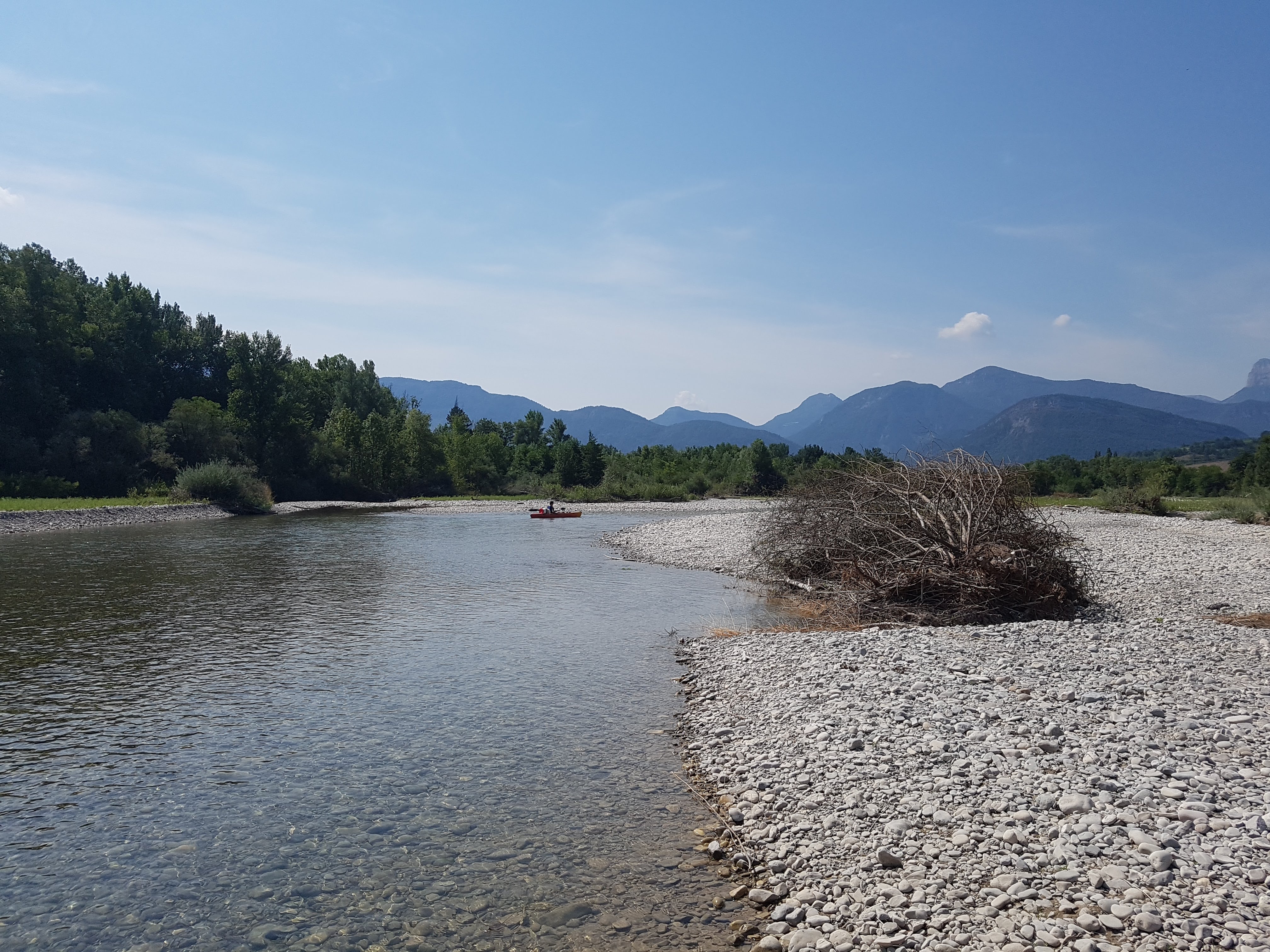 Une très belle journée de descente de la Drôme en canoë entre Vercheny et Saillans soit 8km. Entre amis avec des enfants et à 11 ans. Belle et agréable base à Saillans, une buvette snack où l'on peut manger dans cadre de verdure ombragé à deux pas de la plage.
