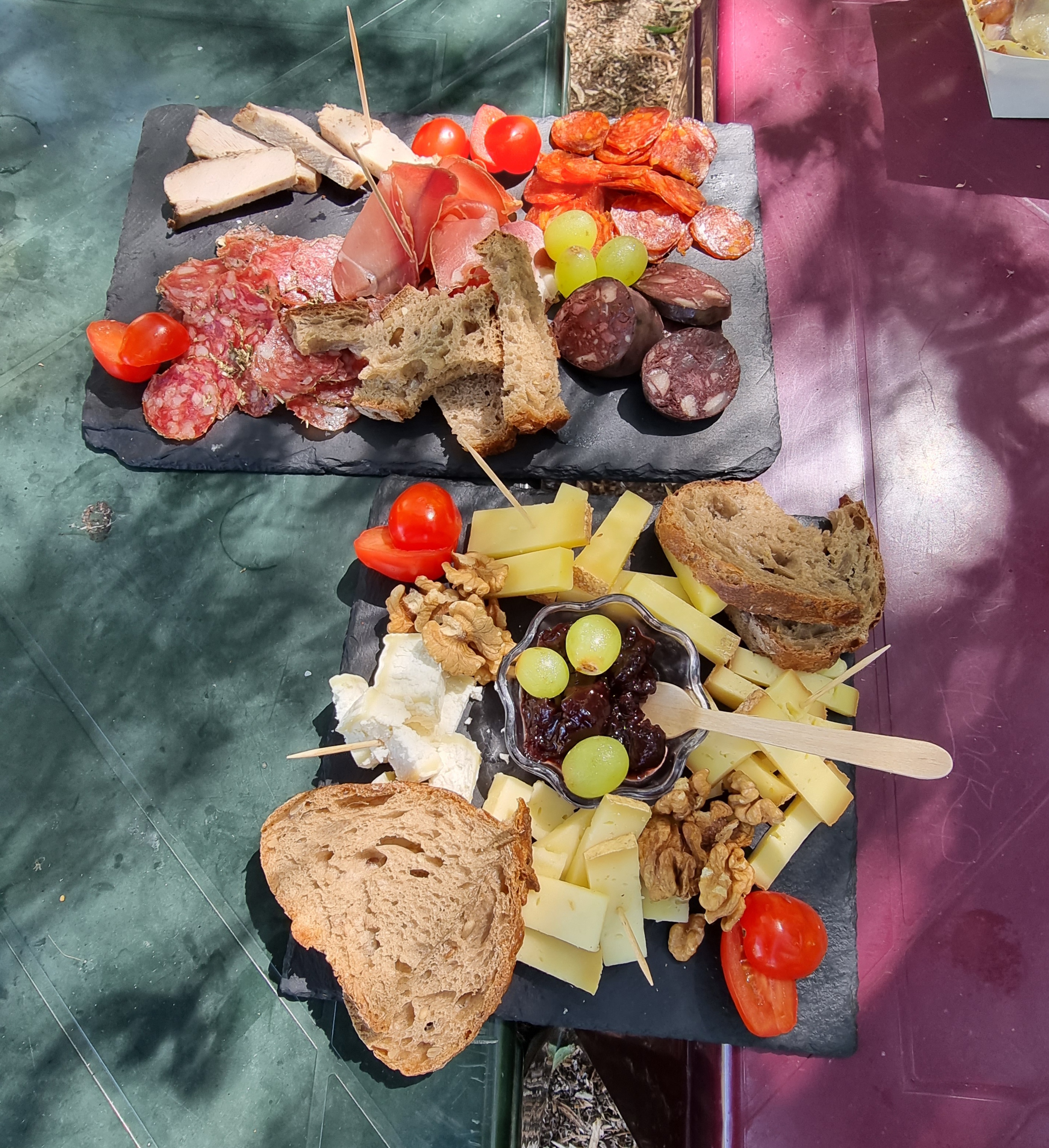Je suis un partisans des planches apéro pour 12euros c'est une première ,je déconseille ,6tranches fine de saucisson 4triangles iper fin d'e chorizo le fromage ,8allumettes quand ont sais le prix de revient d'une planche un minimum est a servir ,ils nous ont vue arriver de loin comme estivants car quand je vois les photos sur les avis aucune correspondance passé votre chemin et vous laissé pas avoir pas le charme du lieux