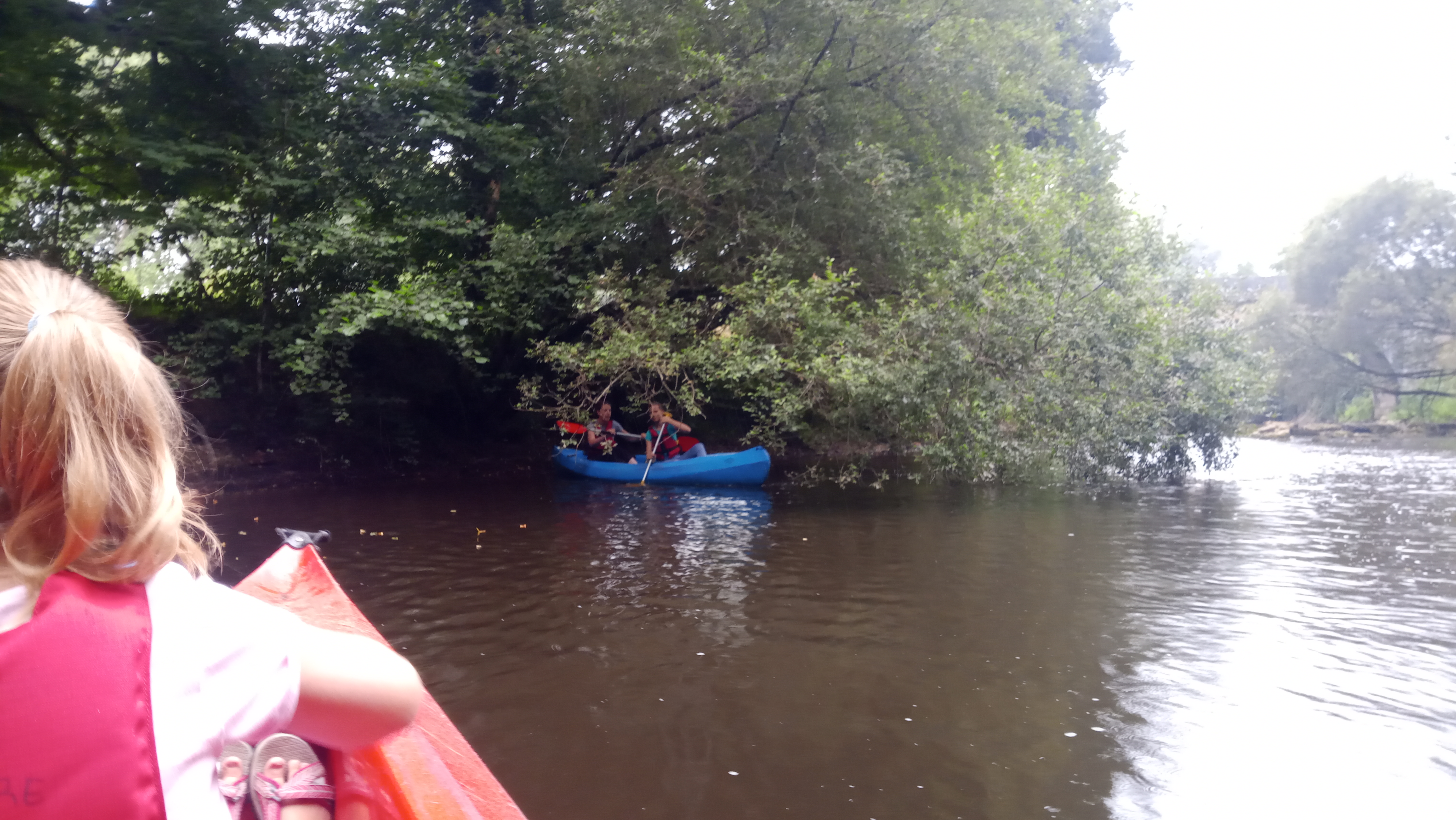 Grand morceau de rivière. Bien que très peu profond par endroits ce qui oblige à sortir du bateau et à le traîner. Gilets de sauvetage fournis. Quelques (petits) rapides et cascades. Activité familiale très amusante.