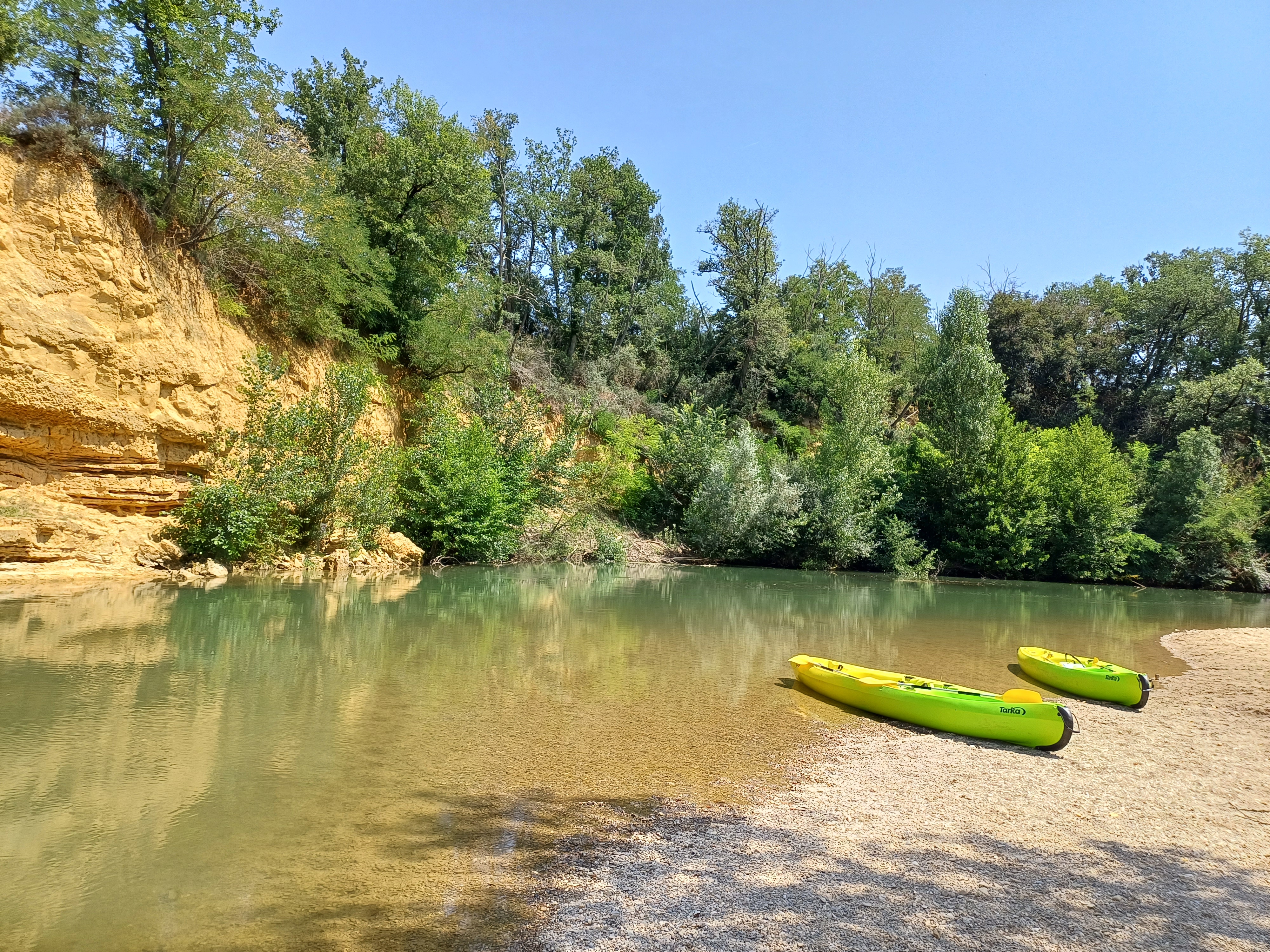 Descente en kayak de 12km validé, 2 adultes et 2 enfants de 6ans, ils ont adoré et bien ramé, ce n'était presque pas assez long pour eux :) Cadre verdoyant parfait avec des petites plages pour manger et se baigner Vous pouvez y aller les yeux fermés, bonne saison à toi Cyrielle et merci, on va t'envoyer du monde :)