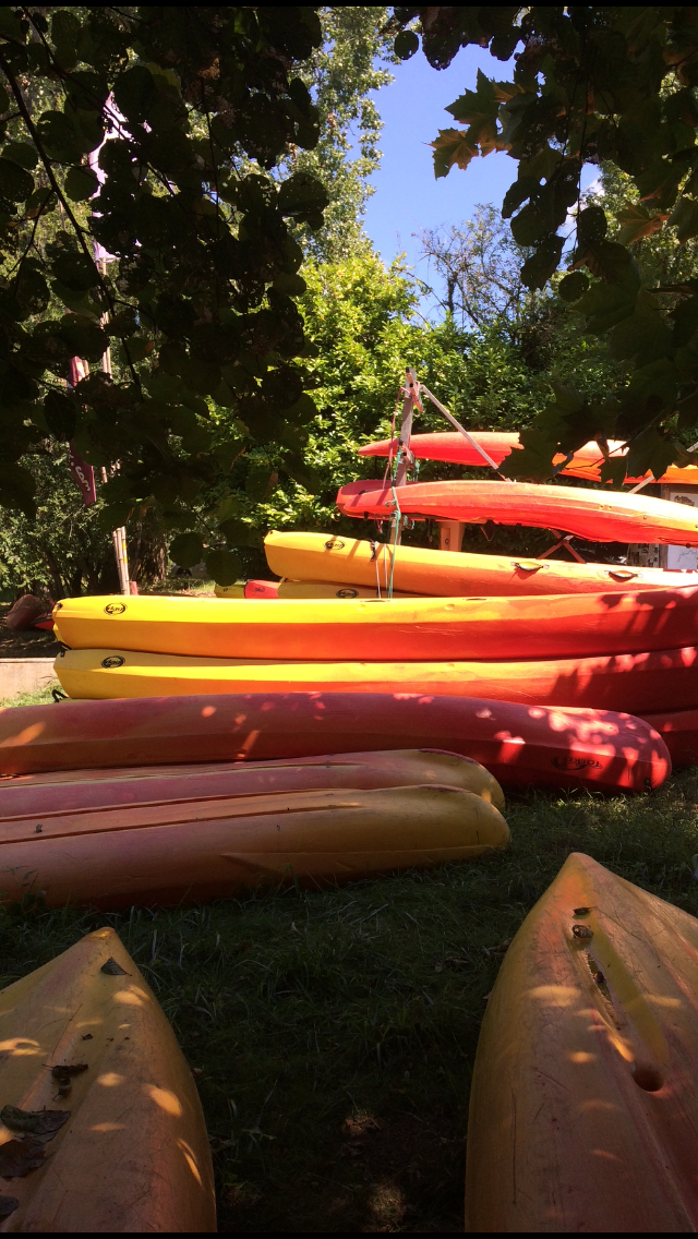 Réserver votre location. Deux heures de descente. 20 euros par bateau. Mais, il n'y a pas d'eau. Plus fatigué d'avoir porté le kayak que d'avoir pagayé. Le trajet est plaisant, à l'ombre.